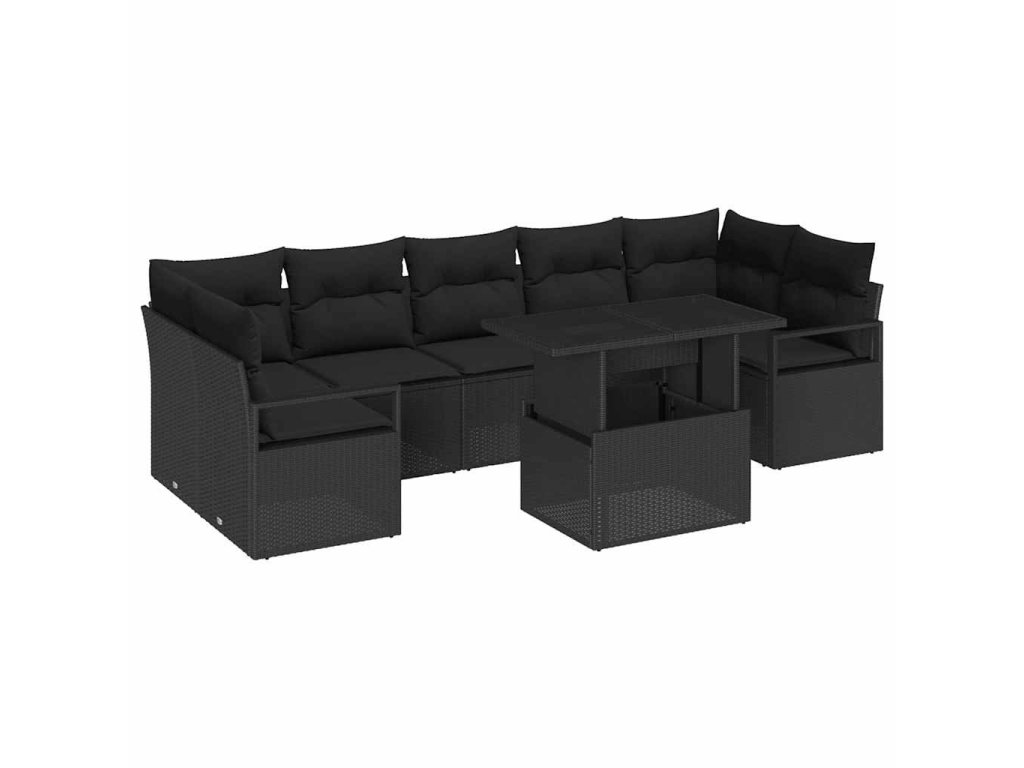 Sada zahradních pohovek s úložištěm 8 pcs Černá Poly ratan