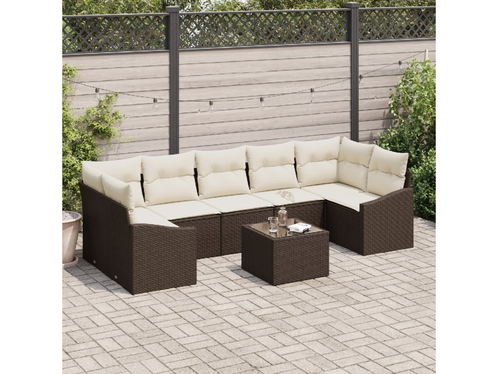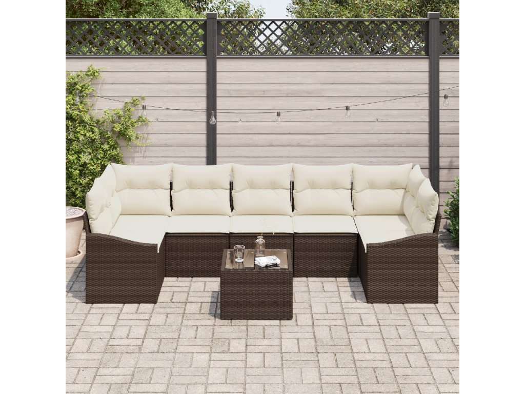 Kvalitní materiály: Užij si pečlivou kombinaci poly ratanu a práškovaného ocelového rámu, co zajišťuje robustnost a UV ochranu. Skleněný stůl přidává eleganci a je snadný na údržbu. Spousta komponentů: Vybaveno vším, co potřebuješ – polštáře s polyesterem a zipem pro snadnou údržbu. Stylová zadní konstrukce dodává estetiku a pohodlí. Bohaté funkce: Snadno přejdi z pohodového povídání u kávy na jídelní uspořádání díky výškově nastavitelným stolům. Multifunkční design podporuje flexibilitu při venkovních akcích. Odolné a UV-odolné materiály zajišťují dlouhou životnost. Doporučené prostředí: Ideální na zahrady, set je navržen pro casual a pohodlné uspořádání pro odpočinek a hostování. Uživatelé ocení jeho přizpůsobitelnost podle svých potřeb. Jednoduchá údržba: Dodržuj pár údržbových kroků, jako je použití ochranných potahů, když se set nepoužívá, aby zůstal v top stavu. Pravidelná údržba je v podstatě snadná – stačí jemně čistit podle potřeby.- Barva: Hnědá a krémová