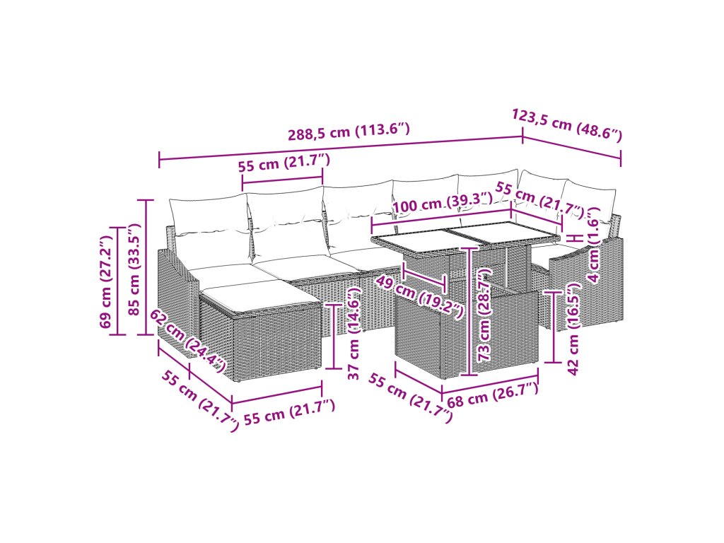 - 7 x Polštář na sezení: 55 x 55 cm (D x Š)