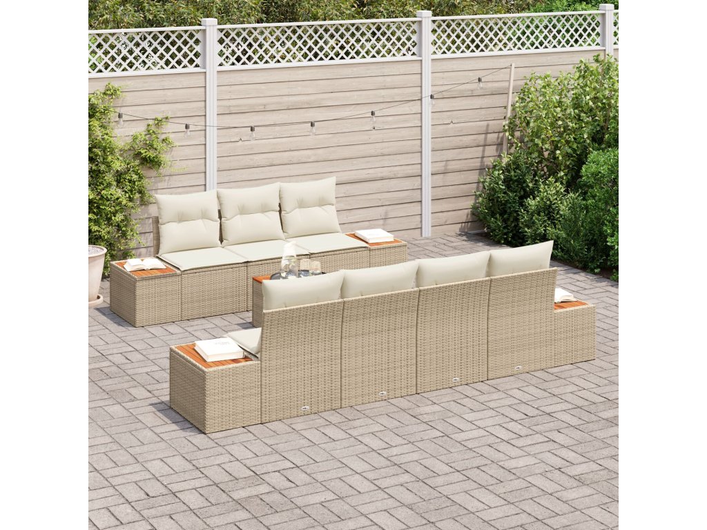 Sada zahradních pohovek s polštářem 8 pcs Béžová Poly ratan