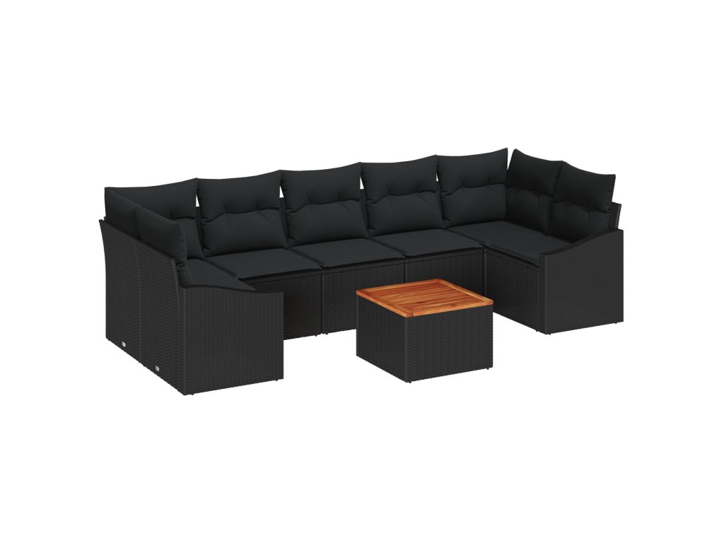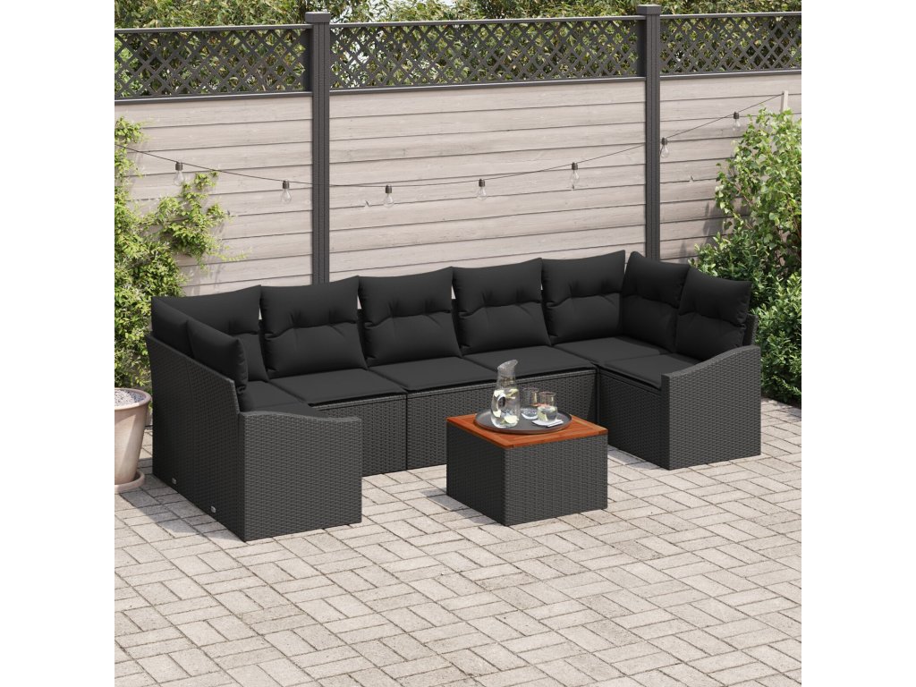 Sada zahradních pohovek s polštářem 8 pcs Černá Poly ratan