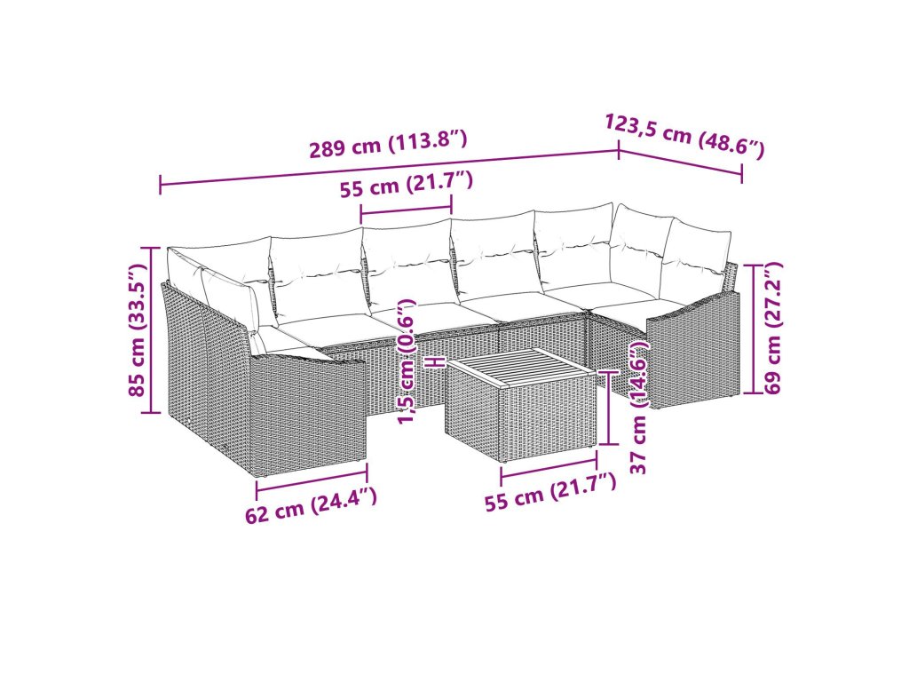 Venkovní konstrukce: Rám sedacího setu je z odolného poly ratanu a ocele, což zajišťuje dlouhou životnost. Elegantní práškově lakovaný ocelový základ přidává šmrnc a pomáhá udržet dobrý stav i přes počasí. Součásti: Set obsahuje středové a rohové sedáky a sofa s opěrkami, který si můžeš různě kombinovat. Je tu taky zahradní stůl, zatímco pohodlné polyesterové polštáře zajišťují komfort. Opěrky jsou hladké a podpůrné. Reaktivní vlastnosti: S nastavitelnýma nožkama a modulárním designem si snadno složíš nebo vyrovnáš set na nerovném terénu. Je navržený na společenské akce, takže je skvělý středobod pro relaxaci nebo zábavu. Univerzální použití: Skvělej pro venkovní párty nebo líné odpoledne na terase. Tento flexibilní design se hodí pro všechny tvé potřeby, takže si můžeš naplno užít čas venku. Údržba: Aby sis udržel polštáře v dobrém stavu, schovej je dovnitř při špatném počasí. Používej obaly na nábytek, když ho nepoužíváš, a utři rámy vlhkým hadříkem, aby zůstaly čistý. Trochu péče ti zajistí, že sezení bude v parádním stavu.- Barva: Černá