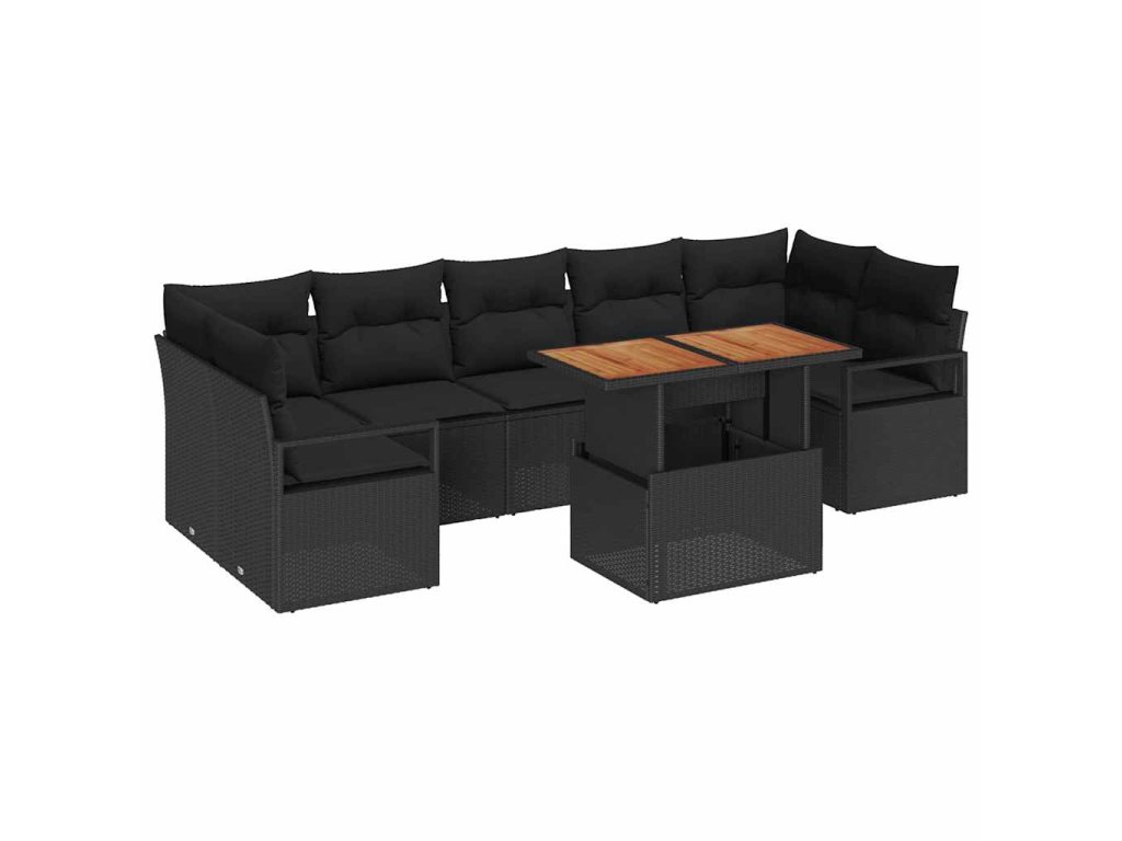 Sada zahradních pohovek s úložištěm 8 pcs Černá Poly ratan