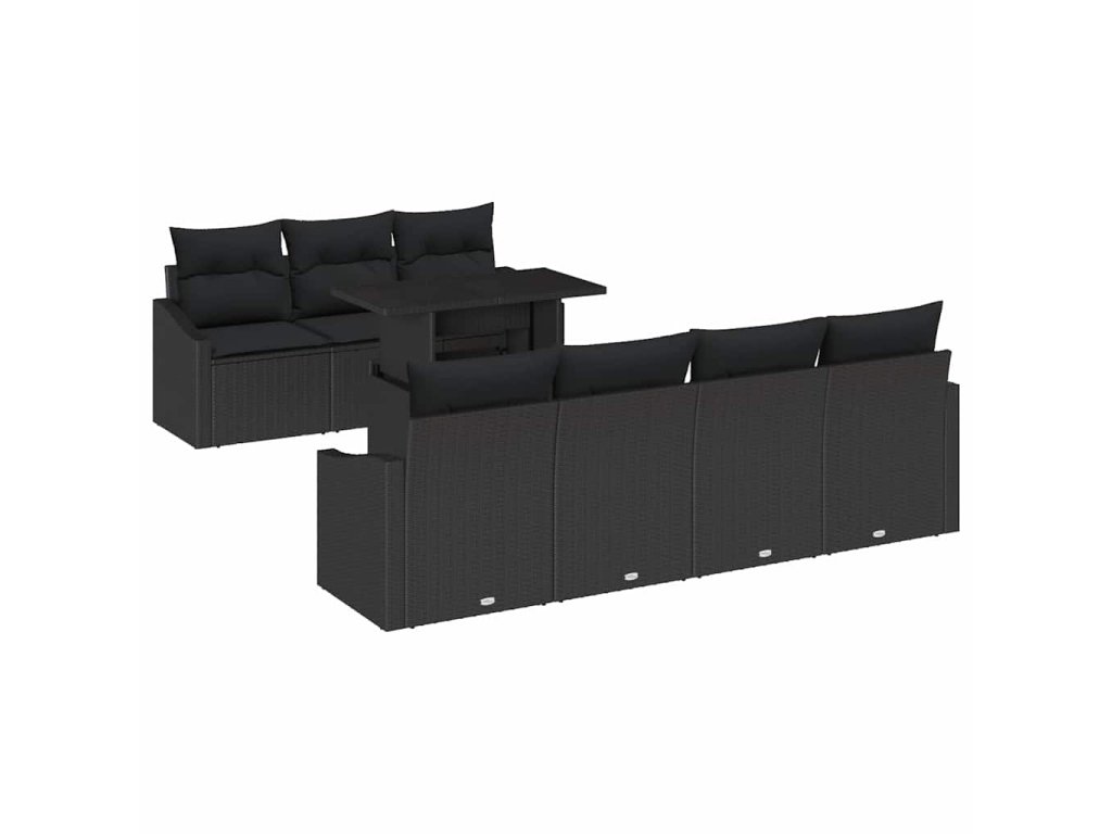 Sada zahradních pohovek s polštářem 8 pcs Černá polyratan