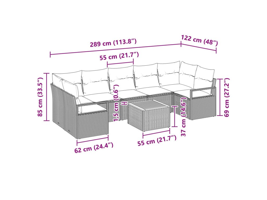 Sada zahradních pohovek s polštářem 8 pcs Šedá Poly ratan