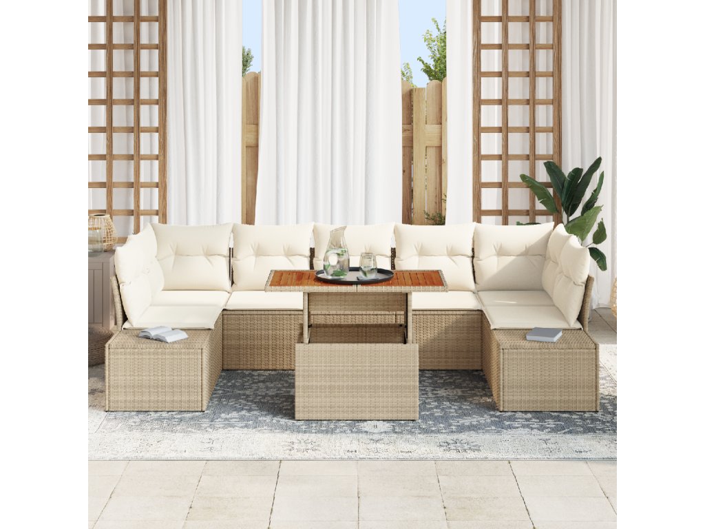 Zahradní jídelní souprava s polštářem 8 pcs Béžová a krémová