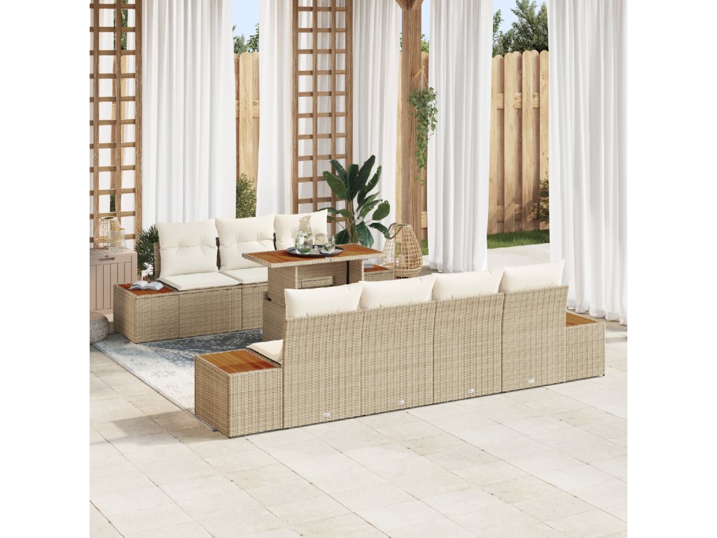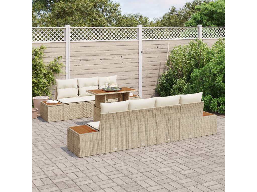Sada zahradních pohovek s polštářem 8 pcs Béžová Poly ratan
