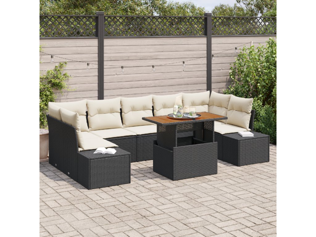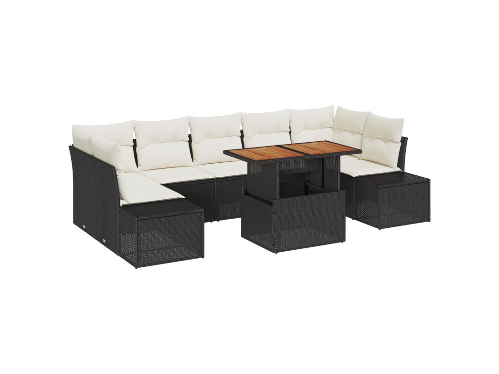 Zahradní jídelní souprava s polštářem 8 pcs Černá a krémová