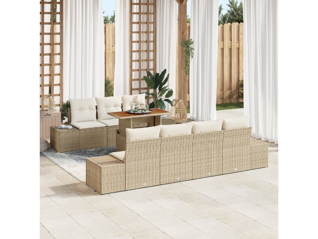 Zahradní jídelní souprava s polštářem 8 pcs Béžová a krémová