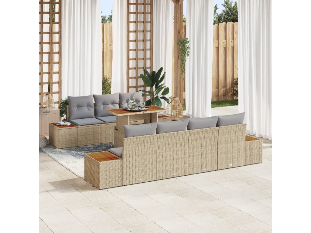 Sada zahradních pohovek s polštářem 8 pcs Béžová Poly ratan