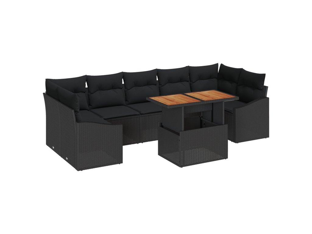 Zahradní jídelní souprava s polštářem 8 pcs Černá a hnědá