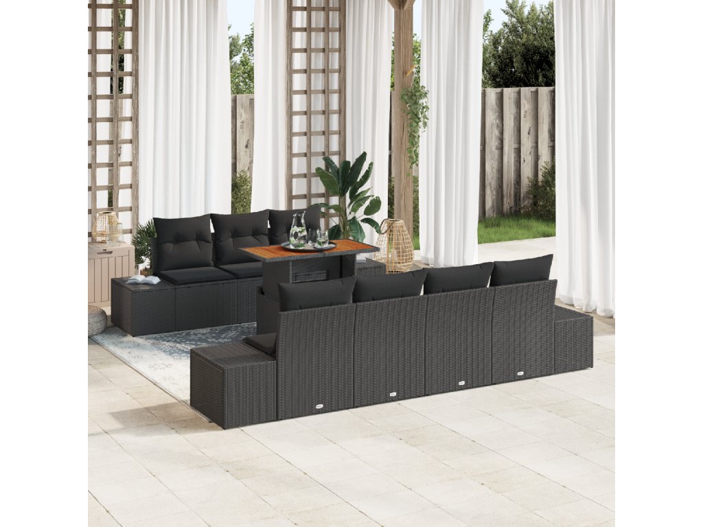 Zahradní jídelní souprava s polštářem 8 pcs Černá a hnědá