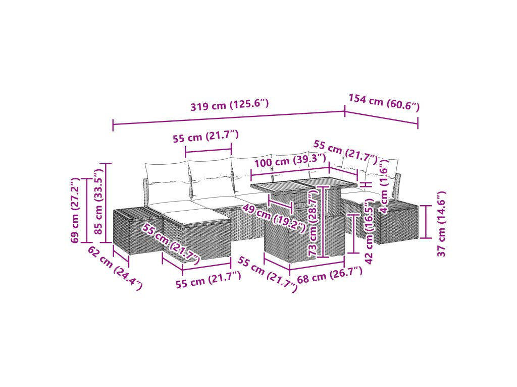 Sada zahradních pohovek s polštářem 8 pcs Šedá a hnědá