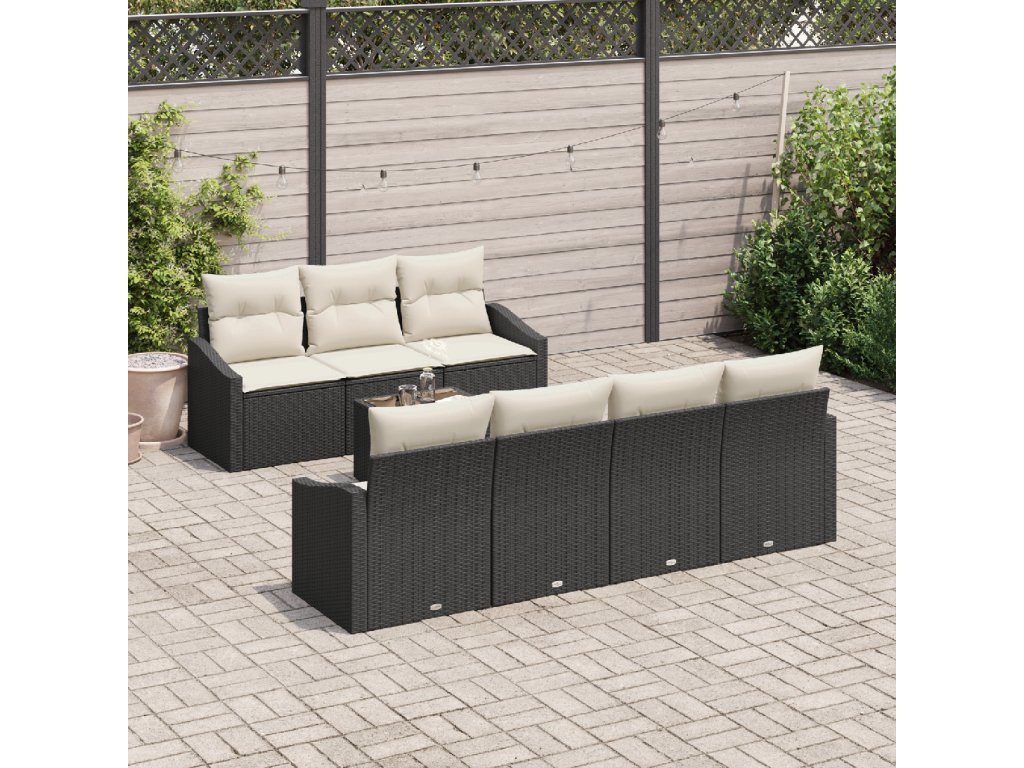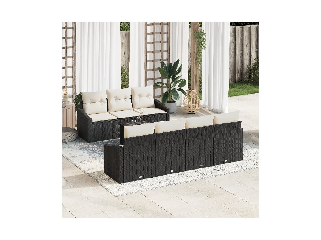 Set pohovek s polštářem 8 pcs Černá a krémová polyratan