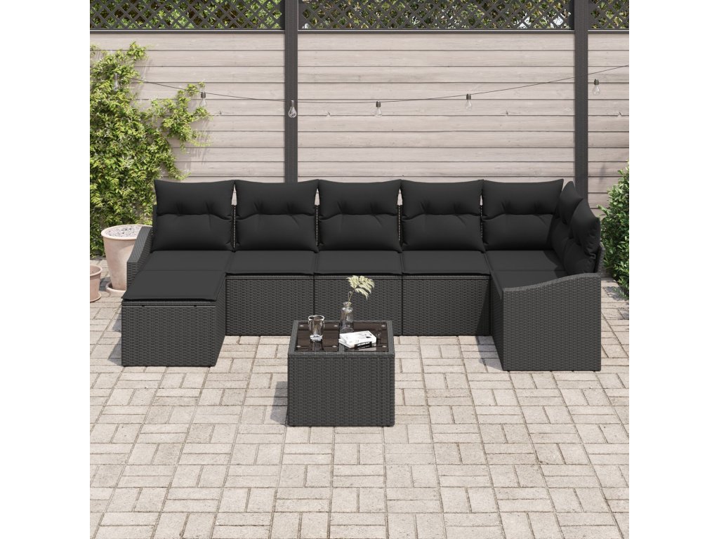 Set pohovek s polštářem 8 pcs Černá polyratan
