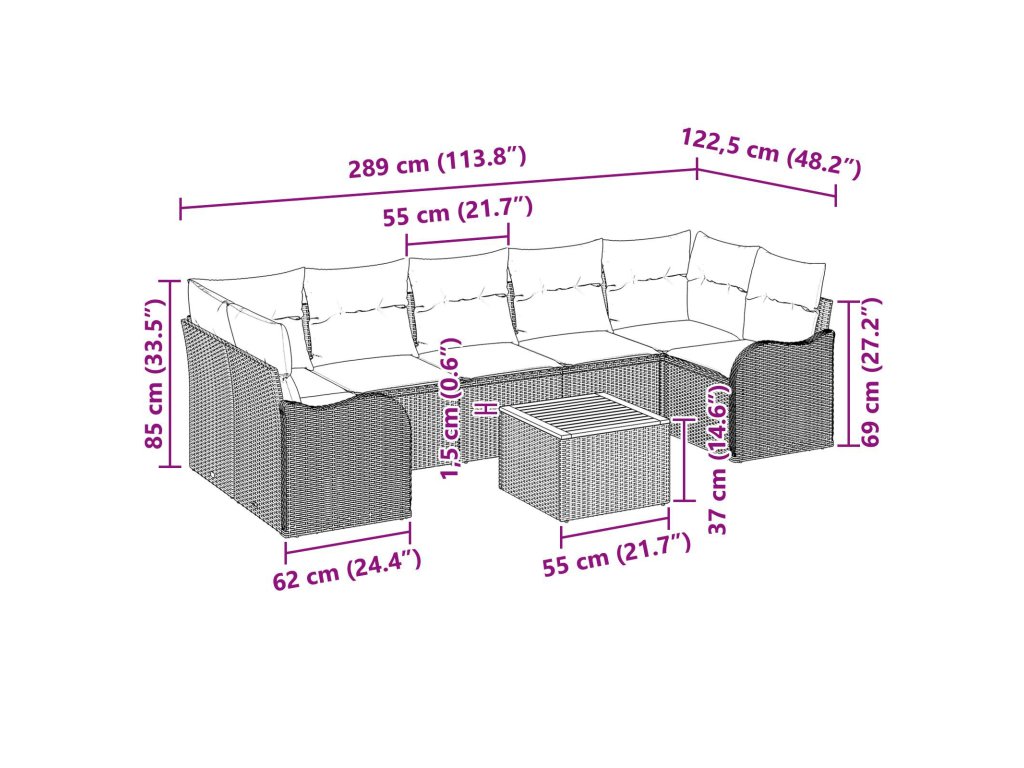Sada zahradních pohovek 8 pcs Béžová Poly ratan