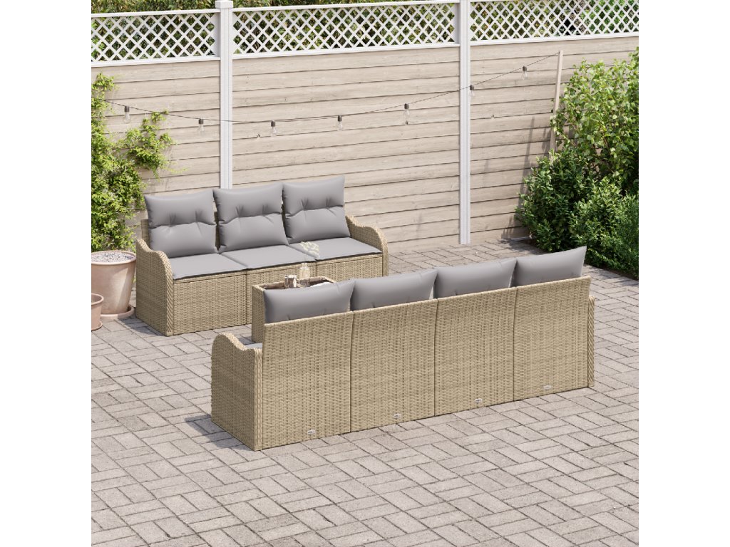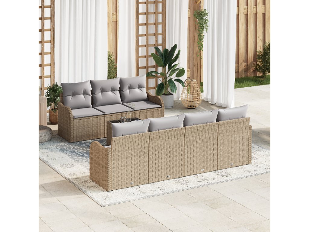Materiál poly ratan: Moderní zahradní sofa set je vyroben z kvalitního poly ratanu, který je trvanlivý a lehký. Tento materiál vydrží UV záření, takže tvůj nábytek si zachová vzhled sezónu po sezóně bez vyblednutí nebo poškození. Navíc textura poly ratanu dodává eleganci a sofistikovanost tvému venkovnímu prostoru, takže se stává stylovým středobodem. Kompletní set: Tento set obsahuje tři centrální židle, čtyři pohovky s opěrkami a odpovídající obdélníkový stůl, všechno navrženo s ohledem na uživatelský komfort. Komponenty, jako poly ratanové opěrky a skleněná deska stolu, spolu skvěle ladí, aby nabídly maximální pohodlí, styl a funkčnost pro společenské akce nebo klidné chvíle. Flexibilní design: Modulární uspořádání umožňuje majitelům snadno měnit rozmístění sezení tak, aby vyhovovalo jejich potřebám, ať už jde o intimní rozhovory nebo větší oslavy. Pratelné potahy přidávají praktičnost, takže tvůj nábytek zůstane svěží a příjemný i po delší době používání. Všestranné použití: Ideální pro zahrady, terasy a dvorky, tenhle sofa set se bez problémů přizpůsobí různým venkovním prostorům. Je navržen tak, aby vyhovoval různorodým životním stylům, od neformálních rodinných večeří po živé zahradní párty, a vytvoří atmosféru, která podporuje relaxaci a pohodu. Snadná údržba: Údržba tohohle nábytkového setu je snadná, potahy se dají snadno sundat a prát. Pravidelně utírej povrchy navlhčeným hadříkem, aby zůstaly v top stavu, a používej kryty, když je nepoužíváš, abys je chránil před nepřízní počasí.- Barva: Béžová