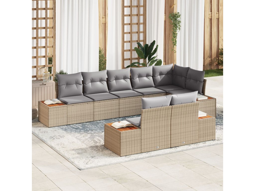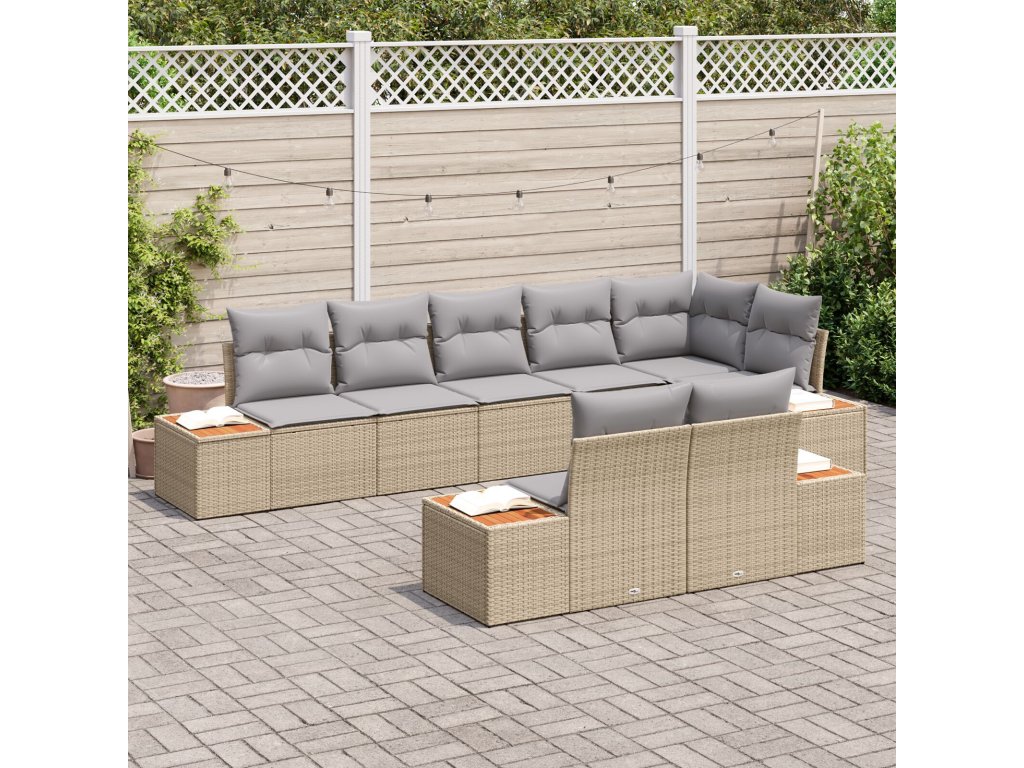 Sada zahradních pohovek s polštářem 8 pcs Béžová Poly ratan