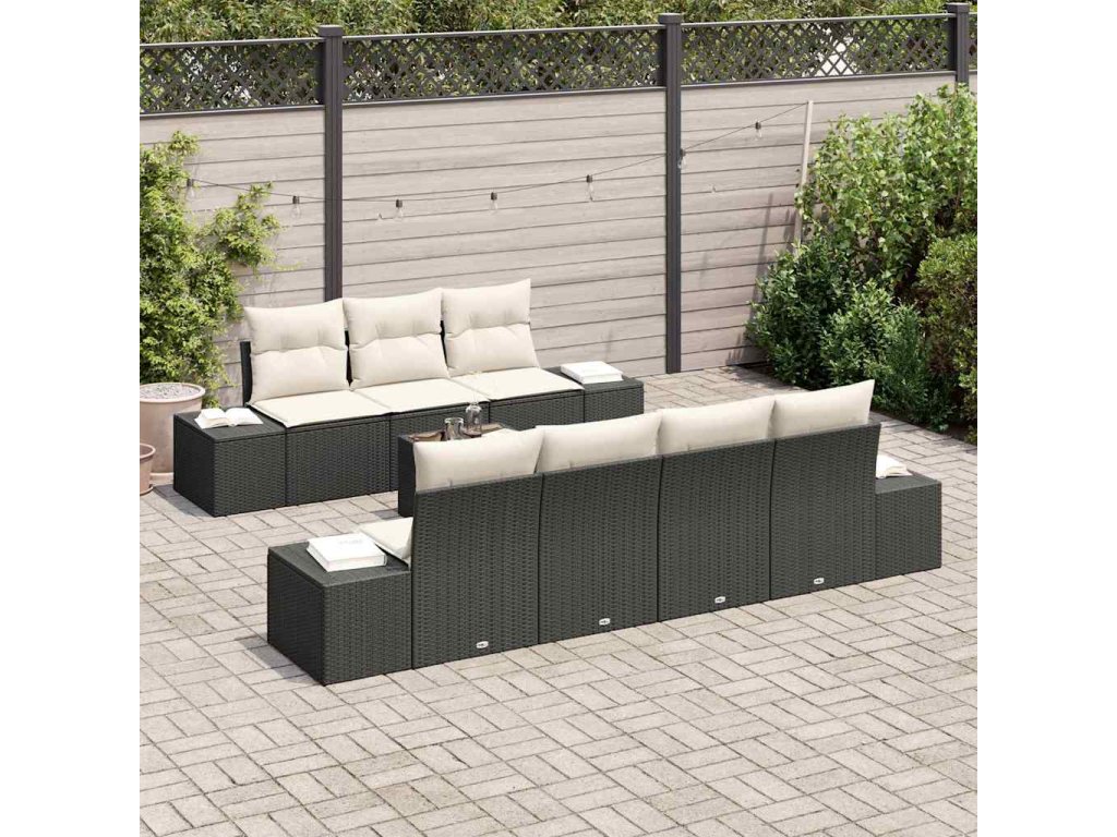 Sada zahradních pohovek 8 pcs Černá a krémová polyratan