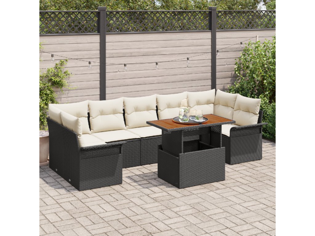 Sada zahradních pohovek s polštářem 8 pcs Černá a krémová