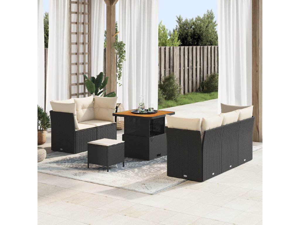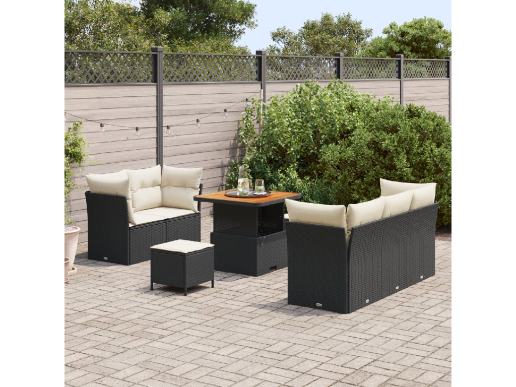 Sada zahradních pohovek 8 pcs Černá a krémová polyratan
