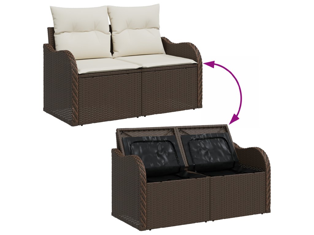 Materiálová kvalita: Tento pohovkový set je hlavně z kvalitního poly ratanu a má rám z práškově lakované oceli, což zajišťuje jeho dlouhou životnost a odolnost vůči různým povětrnostním podmínkám. Vypadá robustně a elegantně, což přidává šmrnc tvému venkovnímu prostoru a nepotřebuje moc údržby. Komponenty: Každý díl má poly ratanové opěrky a opěrky rukou, které ti zajistí pohodlí. Navíc polštáře s pěnovým a polyesterovým vyplněním ti dají komfort, který oceníš nejen při sezení, ale i při odpočinku. Funkční vlastnosti: Díky modulárnímu designu si tento set můžeš poskládat do různých tvarů podle potřeby. Každý modul je UV odolný, takže se nekazí na sluníčku a má praktická řešení pro úložný prostor, což zvyšuje jeho využitelnost. Venkovní použití: Ideální na jaro a léto, tento set je určen výhradně na venkovní použití. Perfektně se hodí na zahradní párty, slunění nebo poklidné večery pod hvězdami, kde ti zajistí pohodlné místo na sezení. Údržba: Aby zůstal krásný co nejdéle, používej ochranné obaly, když není v použití, především při špatném počasí. Vždy polštáře ulož dovnitř, aby se prodloužila jejich životnost. Tímto způsobem zůstane set v top stavu několik sezón.- Barva: Hnědá a bílá