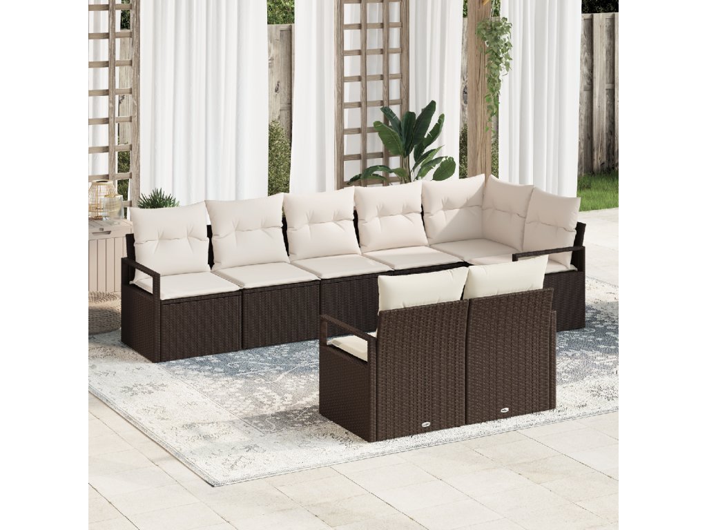 Set pohovek s polštářem 8 pcs Hnědá a krémová polyratan