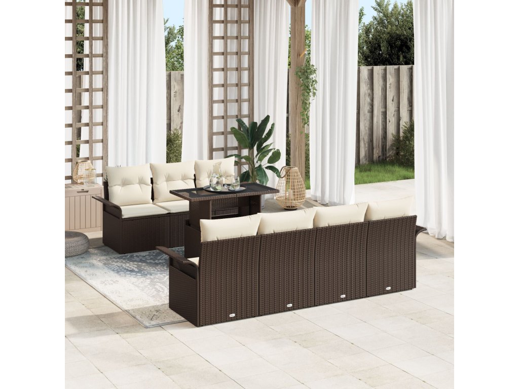 Sada zahradních pohovek s polštářem 8 pcs Hnědá polyratan
