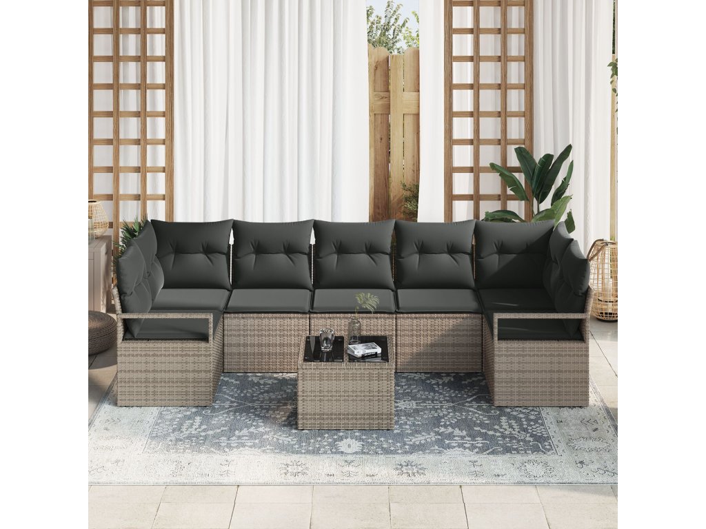 Kvalitní konstrukce z poly ratanu: Každý kousek je pečlivě vyrobený z poly ratanu, co odolává UV záření a i špatnému počasí. Moderní textura vypadá dobře v různých venkovních prostorách a prodlužuje životnost. Tento materiál zajistí, že nábytek pořád vypadá jako nový. Víceúčelové komponenty: Set obsahuje dvě rohová sedadla, tři středová sedadla, dvě pohovky s opěrkami a jeden stůl. Každý prvek se dá přizpůsobit podle potřeby a počtu hostů. Stůl z tvrzeného skla je nejen praktický, ale i stylový, ideální k setkání nebo relaxaci. Pohodlné a odnímatelné polštáře: Set má polštáře s pěnovou výplní, co drží v poly ratanu. Díky zipu je snadno sundáte a udržujete. To se hodí při sezónních změnách a zajišťuje pohodlí a jednoduchost při údržbě. Ideální venkovní použití: Tento set je skvělý pro zahrady nebo terasy, dodává komfort a styl, ať už máte rodinné oslavy nebo větší akce. Modulární design přizpůsobí se každé příležitosti. Bezproblémová údržba: Údržba je super jednoduchá; stačí jen utřít a zakrýt, když se nepoužívá, aby zůstal v top stavu. Takhle se zajišťuje připravenost na spontánní sezení venku a péče se postará o dlouhou životnost.- Barva: Šedá