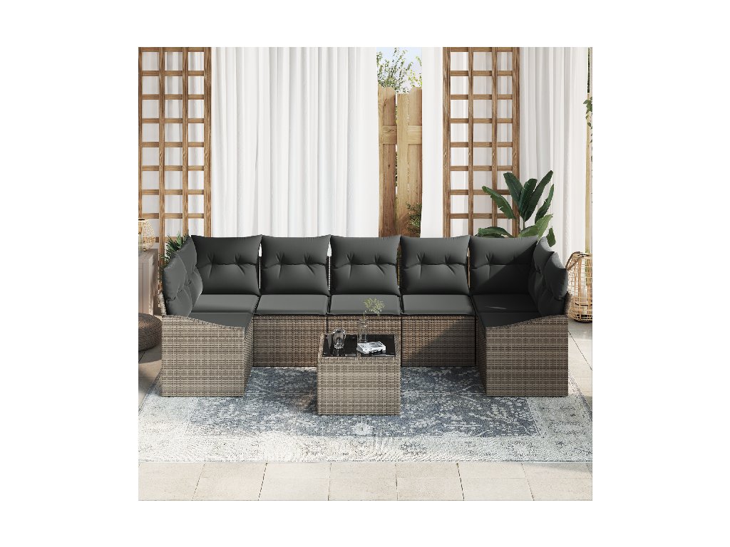 Set pohovek s polštářem s úložištěm 8 pcs Šedá polyratan