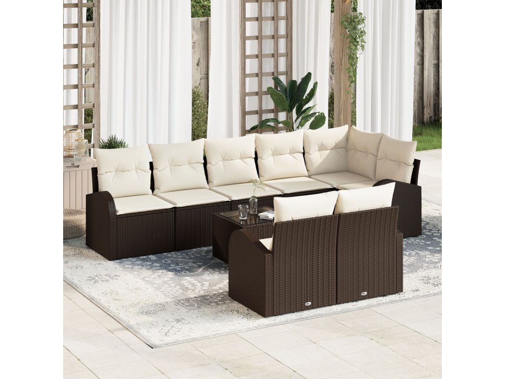 Materiál polyratan Tato zahradní pohovková sada z kvalitního polyratanu je odolná a má styl. Je skvělá do venkovního prostředí, jelikož odolává UV záření, takže ti vydrží dlouho a nemění vzhled. Na údržbu je opravdu jednoduchá, stačí pár tahů hadrem. Stylové opěrky Moderní zadní část je skvěle zpracovaná, takže pohovka vypadá fajn ze všech stran. Zakřivené opěrky z polyratanu zaručují pohodlí a přirozené opření rukou při lenošení. Má nejen hezký vzhled, ale i funkční design, který zvyšuje pohodlí. Pohodlí a funkčnost Tato pohovková sada má sedací polštáře s odnímatelnými potahy, takže si každý pořádně užije pohodlí po celou sezónu. Polštáře jsou plněné příjemným polyesterovým vláknem, které se přizpůsobí tvaru těla a poskytuje skvělou oporu pro pohodlné sezení bez ztráty stylu. Modulární variabilita Díky modulárnímu designu si můžeš pohovku uspořádat podle svých potřeb, ať už máš malý patio nebo velkou zahradu. Tato flexibilita ti umožní upravit sezení podle potřeby, takže je ideální pro různé venkovní dekorace. Péče a údržba Udržet svou pohovku v top stavu je snadné; stačí ji otřít hadříkem. Když ji zrovna nepoužíváš, doporučuje se použít kryt, aby se chránila před špatným počasím a prodloužila se její životnost.- Barva: Hnědá a krémová