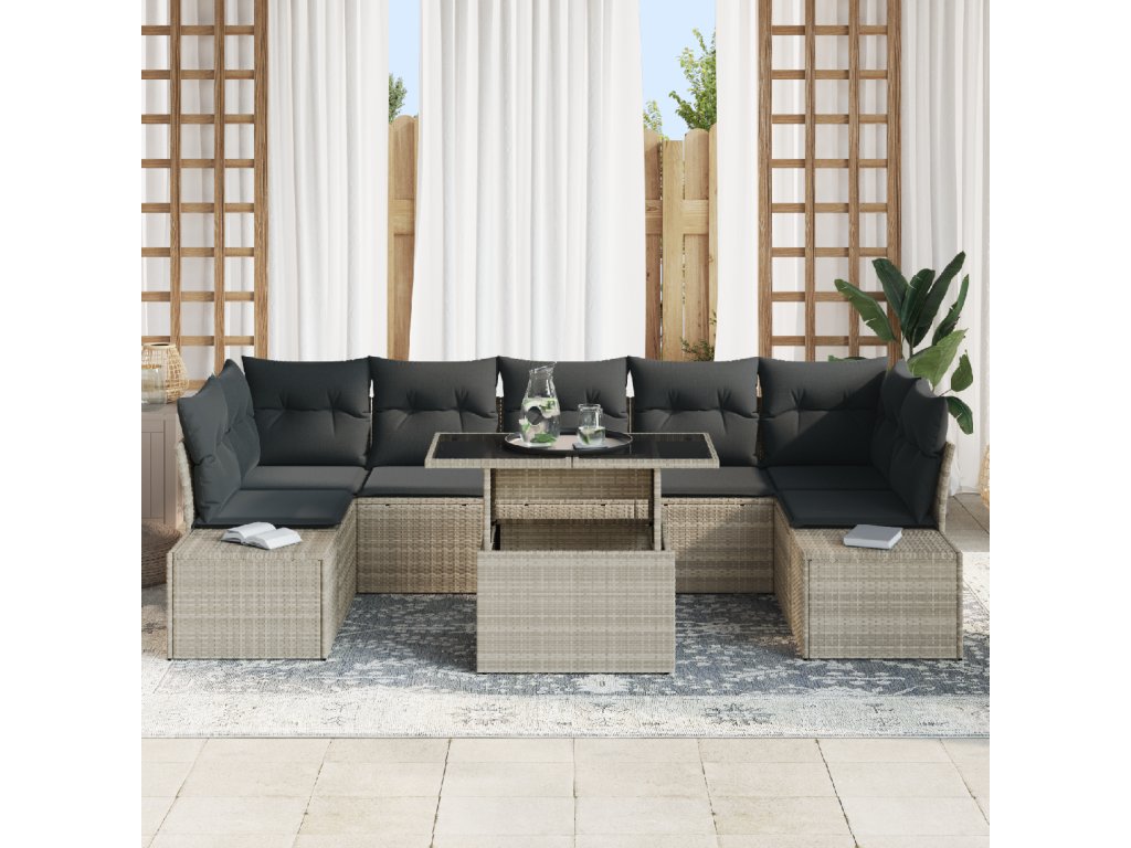 Set pohovek s polštářem 8 pcs Světle šedá polyratan