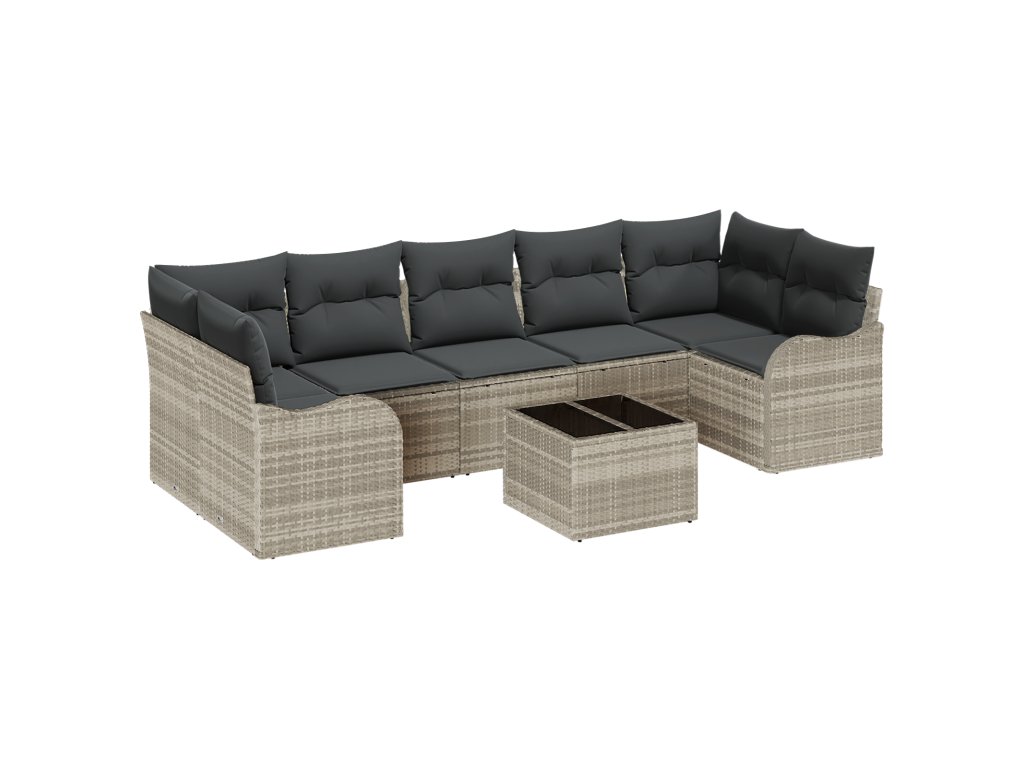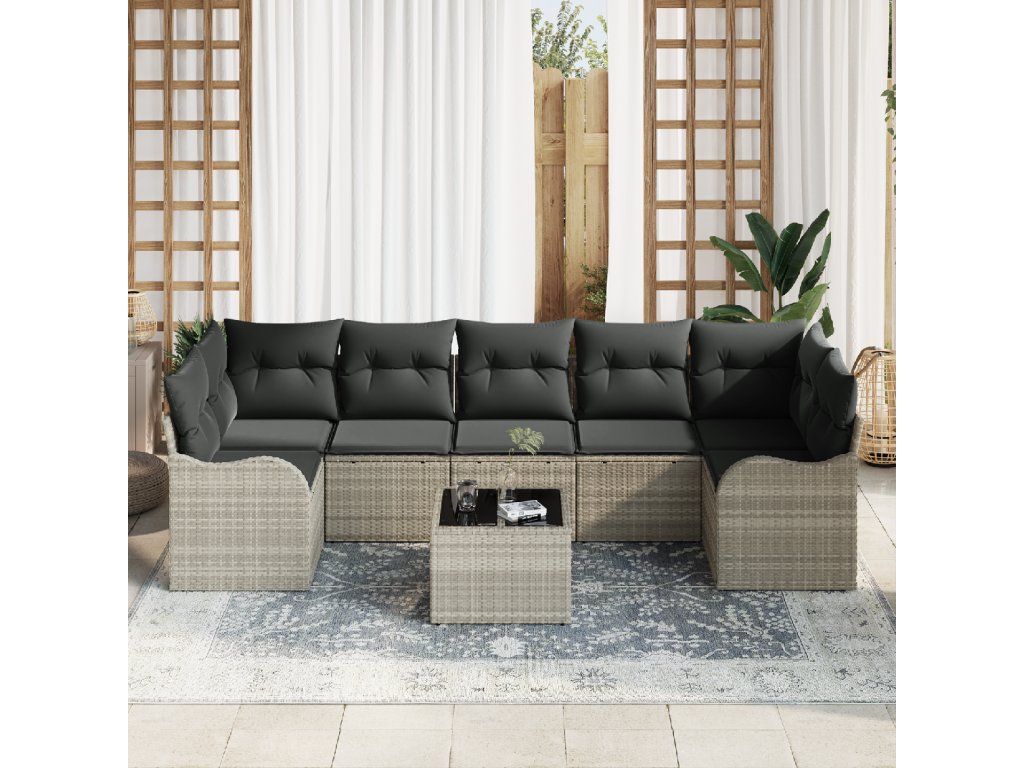 Materiály: Tato zahradní sedací souprava je vyrobená z kvalitního poly ratanu, který nabízí odolnost a elegantní vzhled. Práškově lakovaný ocelový rám zajišťuje stabilitu a odolnost vůči počasí, takže si zachovává stylovou estetiku. Součásti: Souprava obsahuje univerzální rohové a středové sedačky, každá pečlivě navržena pro pohodlí a styl. Prostorné arm sofasy a elegantní skleněný stůl se skvěle doplňují a umožňují různé sezení pro setkávání, odpočinek nebo jídlo. Vlastnosti / Funkce / Design: Modulární design soupravy umožňuje nekonečné možnosti přizpůsobení pro jakékoli venkovní prostředí. UV odolné materiály chrání před slunečním poškozením a zachovávají vizuální přitažlivost. Lehké provedení usnadňuje přesun pro intimní setkání nebo větší akce. Doporučené použití: Ideální pro letní setkání, souprava se hodí do různých zahradních a terasových prostorů. Ať už děláte rodinný gril nebo si užíváte klidnou chvilku s knihou, její styl povzbudí relaxaci a společenskou interakci. Je perfektní jak pro neformální setkání, tak živé zahradní párty. Údržba: Pro dlouhou životnost se doporučuje pravidelně otírat vlhkým hadříkem. V případě špatného počasí používejte ochranný potah, aby souprava zůstala v bezvadném stavu po celou sezónu. Odnímatelné a pratelné potahy na polštáře navíc usnadňují údržbu, takže souprava vypadá stále jako nová.- Barva: Světle šedá