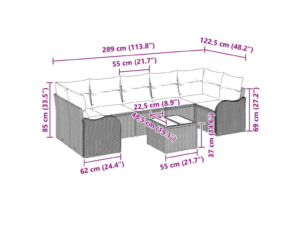Tato moderní zahradní sedací souprava je skvělým doplňkem pro jakýkoliv venkovní prostor a nabízí pohodlí i moderní vzhled. Navržená tak, aby proměnila vaši zahradu nebo terasu v klidnou oázu, souprava kombinuje jednoduchost a funkčnost s čistými liniemi a otevřeným rámem. Skvělá kombinace poly ratanu a oceli dodává decentní eleganci, ideální pro setkávání, odpočinek nebo jen lenošení na sluníčku. Díky modulární konstrukci se souprava přizpůsobí různým potřebám a preferencím a nabízí pohodlí a flexibilitu pro každou situaci.