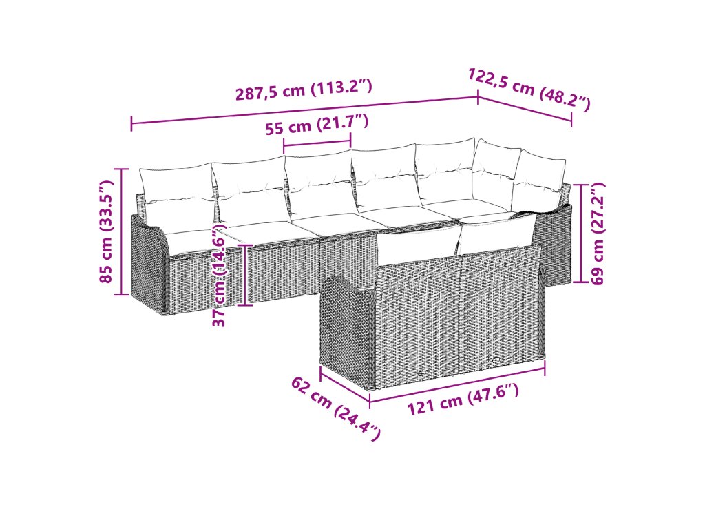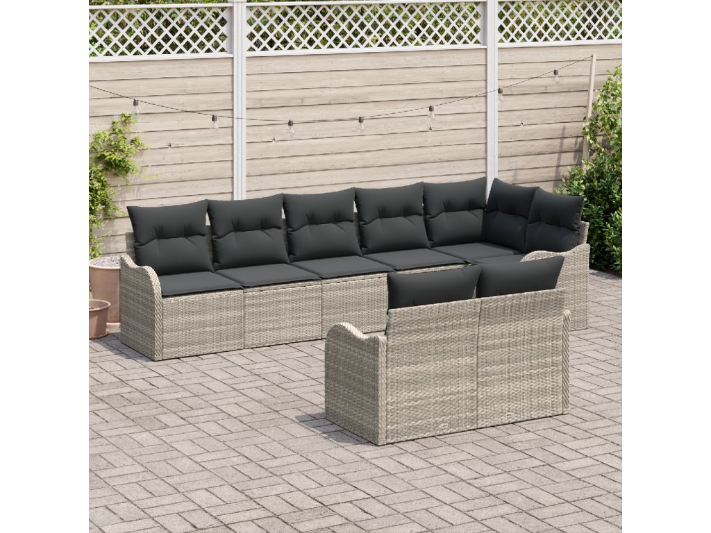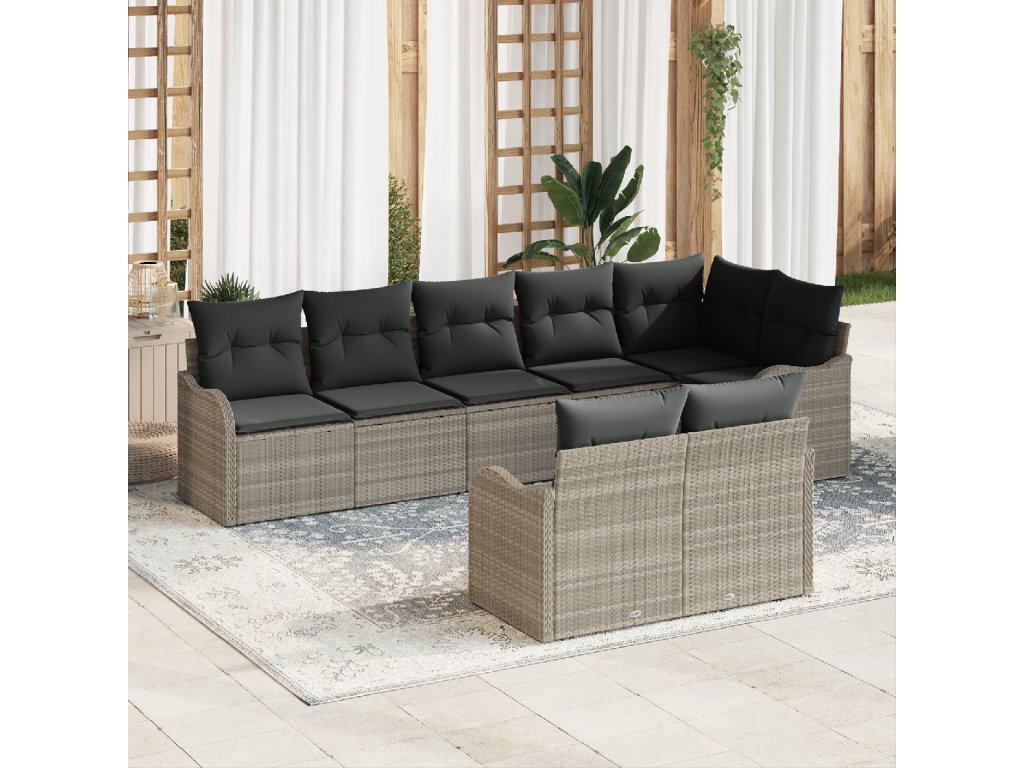 Materiál poly ratan Tento kvalitní poly ratan je trvanlivý a stylový, přidává sofistikovaný vzhled venkovním prostorům. Je odolný vůči UV záření, takže si zachová svůj vzhled i v různých sezónách. Textura dává zahradám a terasám elegantní ráz, i když čas letí. Kompletní souprava sedaček Moderní zahradní souprava zahrnuje vše potřebné pro optimální venkovní prostor. Každý kousek byl pečlivě vyroben z poly ratanu a ocelových nohou, které zajišťují stabilitu. Díky modulárnímu designu nabízí tato souprava mnoho možností uspořádání, ideální pro relaxaci nebo zábavu. Pohodlné sezení Na pohodu těchto sedaček jsme mysleli – polstry jsou pečlivě navrženy, plněné polyesterem. Potahy doporučujeme prát, což usnadňuje údržbu. Souprava je ideální pro lenošení, ať už se s knížkou opalujete nebo si s kávou užíváte venkovní brunch. Zakřivené opěrky rukou Poly ratanové opěrky rukou mají ergonomický tvar, takže se pohodlně opírají a podporují vás. Vhodné pro dlouhé sezení, jistě přinesou úlevu po náročném dni. Tímto způsobem si můžete užívat naplno. Modulární flexibilita Tato souprava je univerzální a její modulární design umožňuje snadnou úpravu podle vašich potřeb, ať už hostíte rodinnou oslavu nebo slavnostní večeři. Lehká konstrukce usnadňuje přeuspořádání, takže si můžete vytvořit prostor podle svého gusta.- Barva: Světle šedá