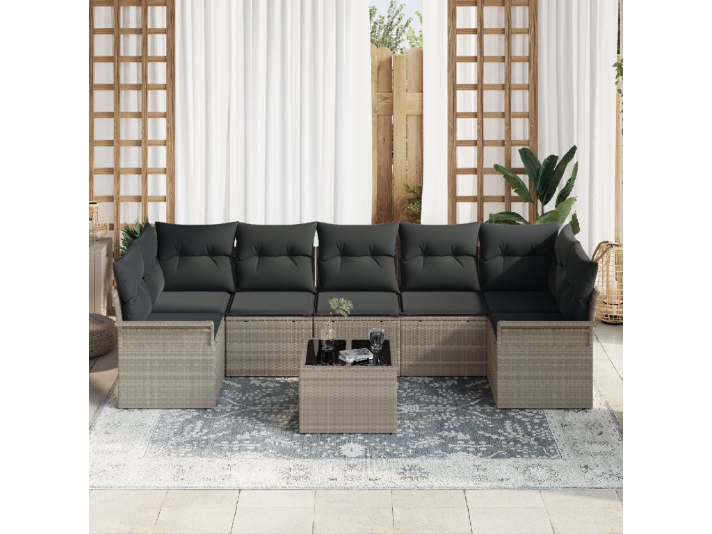 Sada zahradních pohovek s polštářem 8 pcs Světle šedá polyratan