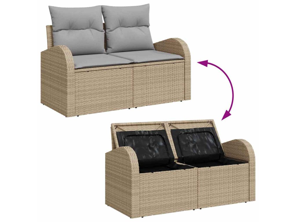 Sada zahradních pohovek s polštářem 8 pcs Béžová Poly Ratan