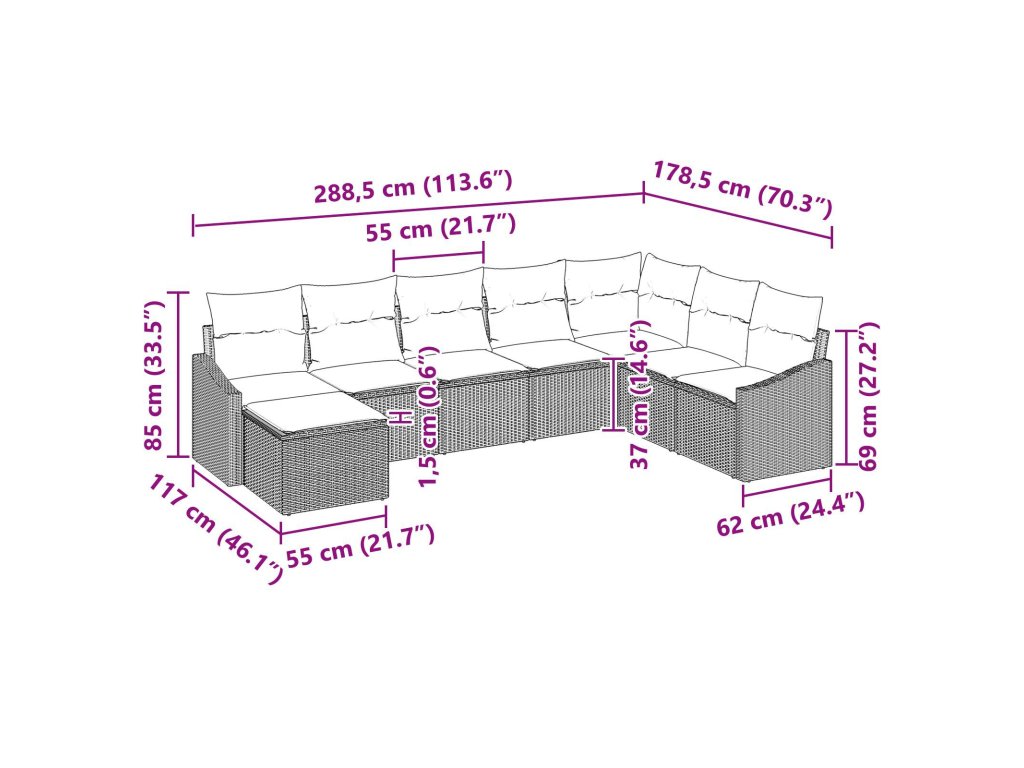 Set pohovek s polštářem 8 pcs Černá polyratan