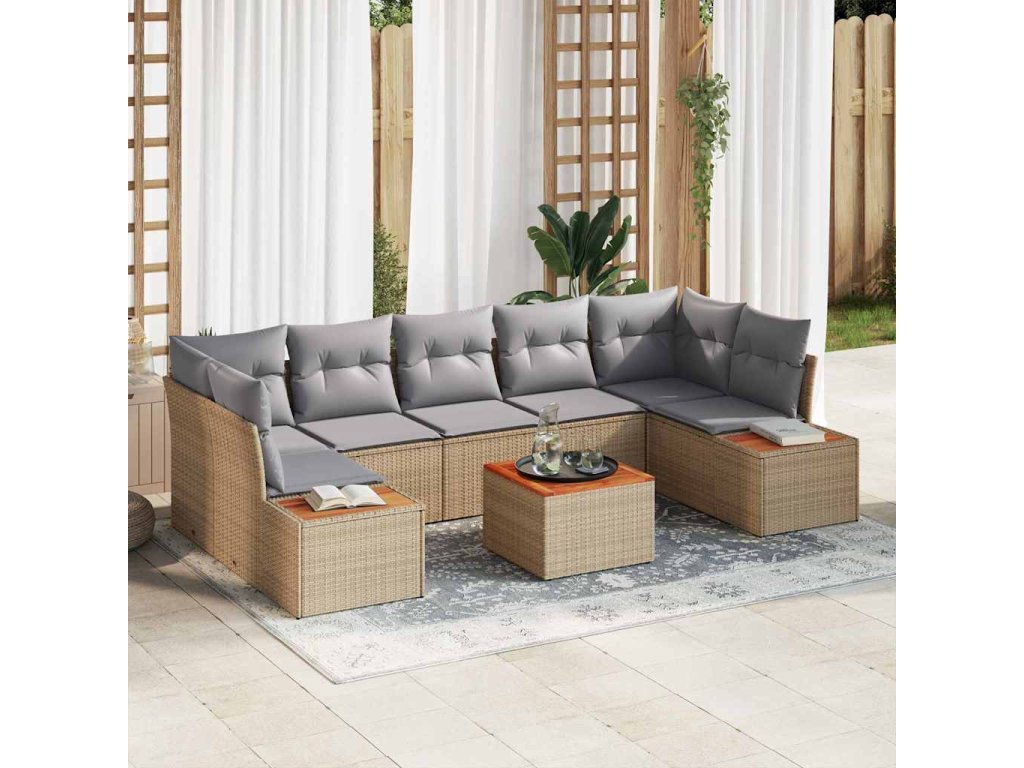 Sada zahradních pohovek s polštářem 8 pcs Béžová Poly ratan