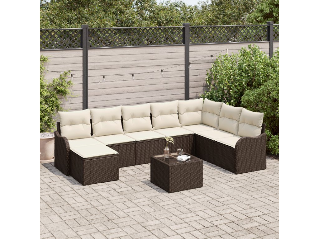 Sada zahradních pohovek s polštářem 9 pcs Hnědá Poly ratan