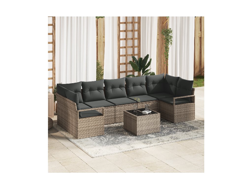 Sada zahradních pohovek 8 pcs Šedá Polyratan a ocel a sklo