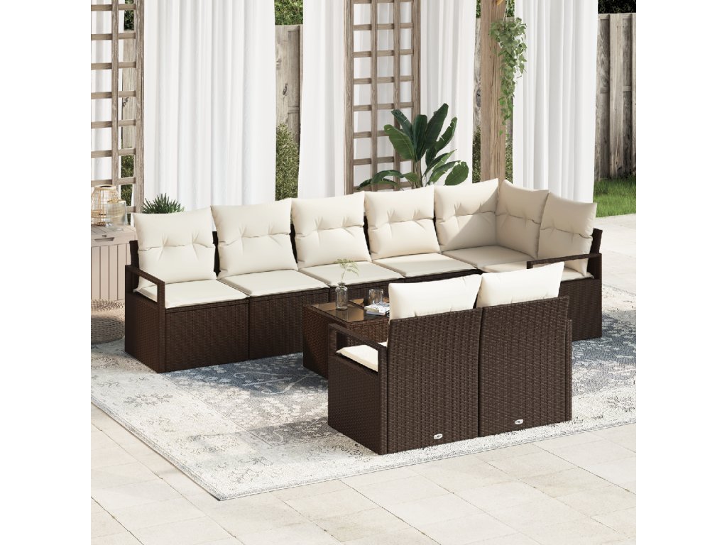 Materiály: Tenhle zahradní pohovkový set, vyrobený z kvalitního poly ratanu, je odolný vůči UV záření a různým povětrnostním podmínkám, což zajišťuje dlouhá léta používání. Jeho tkaná textura přispívá k modernímu stylu, a přitom zajišťuje pohodlí, takže je to skvělá volba pro každou zahradu nebo terasu. Zahrnuté komponenty: V setu najdeš pohodlné polštáře s pěnou a zipem, což usnadňuje údržbu. Záda setu jsou hezky zpracovaná, což mu dodává styl a funkčnost. Komponenty jsou ručně tkané z poly ratanu, což podtrhuje moderní estetiku a poskytuje dobré pohodlí. Vlastnosti / Funkce / Design: Modulární design se dá snadno přizpůsobit a uspořádat podle tvých potřeb. Je to ideální pro malé setkání i velké akce, takže vyhovuje různým estetickým a funkčním požadavkům. Odporučované využití: Skvělý na zahrady a terasy, tenhle pohovkový set se hodí k různému venkovnímu dekoru. Je ideální na jaro a léto a dodává nádech elegance a flexibility, a podporuje maximální relaxaci a zábavu venku. Údržba: Pro uchování vzhledu používej ochranný kryt, když se nepoužívá. Pravidelně otírej nábytek, aby zůstal hezký. Sestavení vyžaduje dva lidi se šroubovákem pro snadné nastavení. Následuj tyto jednoduché kroky, aby set vydržel dlouho hezký a funkční.- Barva: Hnědá