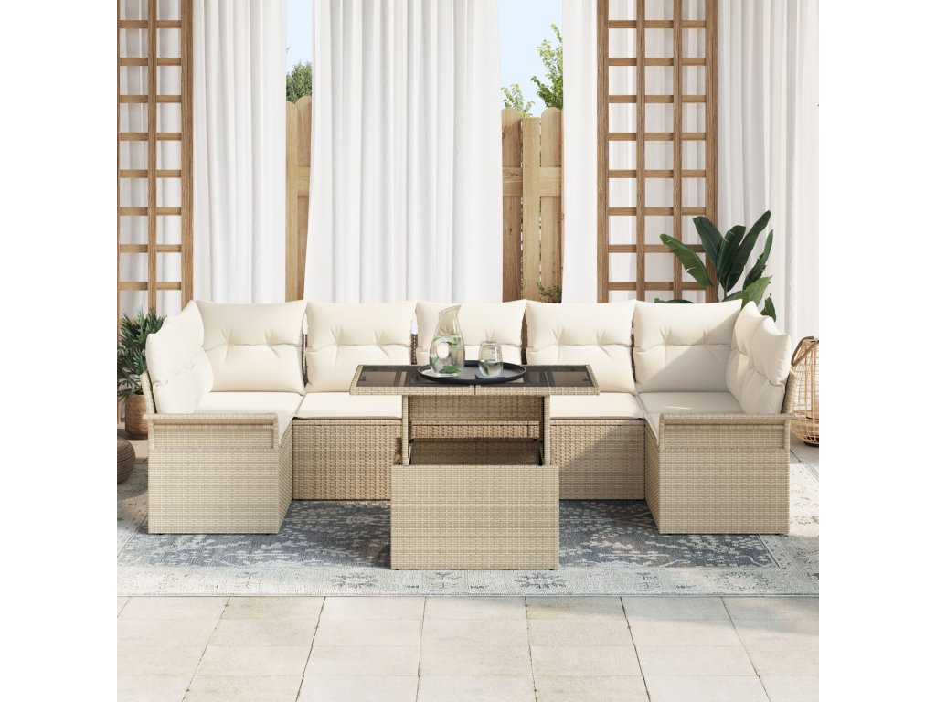 Sada zahradních pohovek s polštářem 8 pcs Béžová polyratan