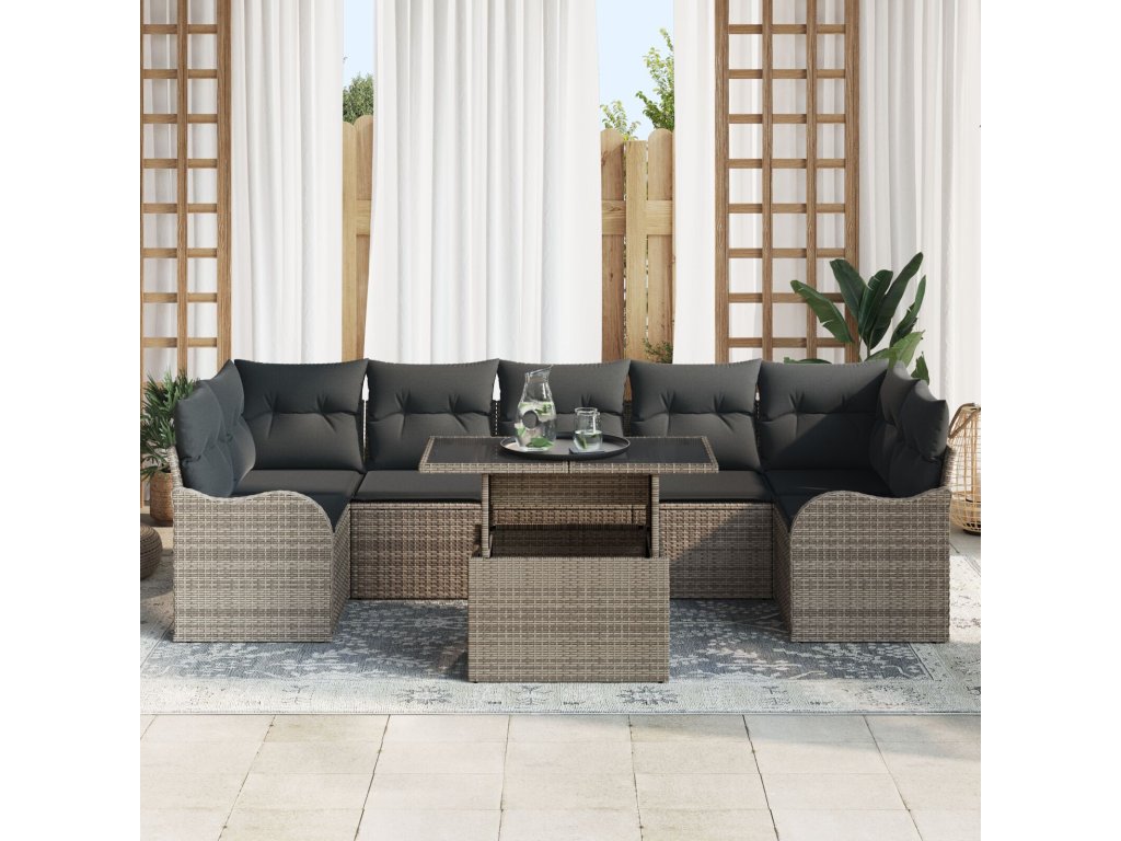Sada zahradních pohovek s polštářem 8 pcs Šedá polyratan