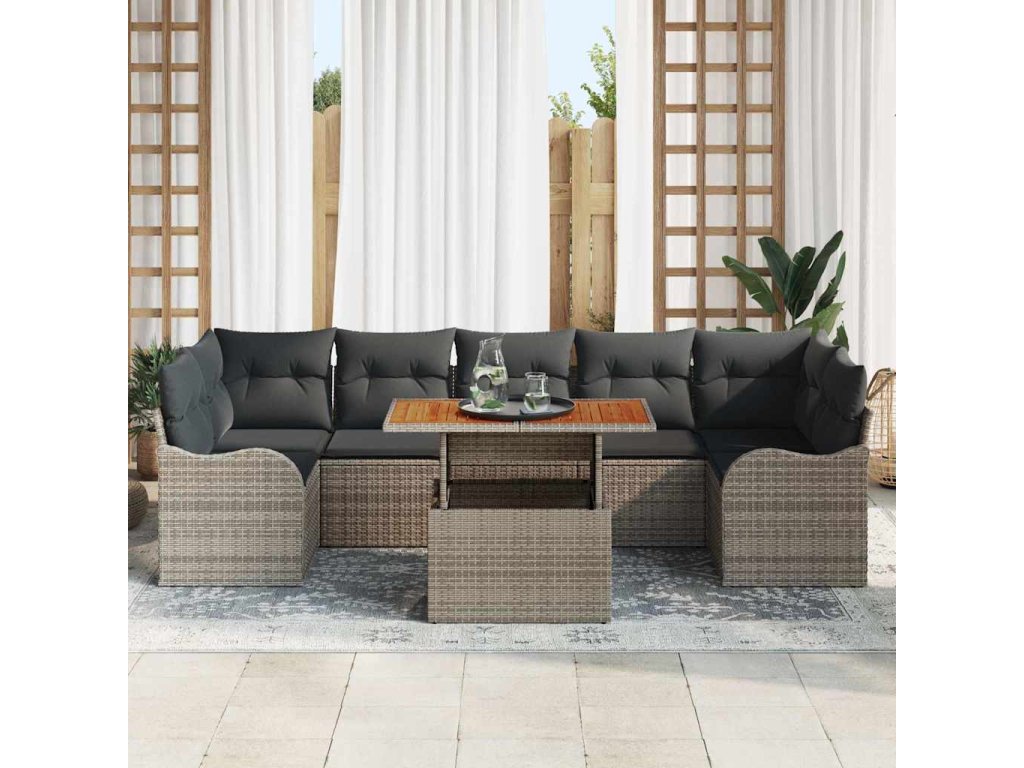 Sada zahradních pohovek s úložištěm 8 pcs Šedá Poly ratan