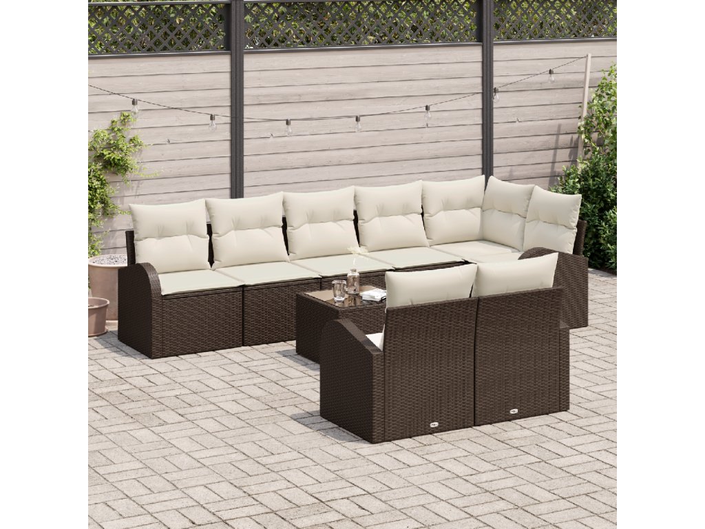 Set pohovek s polštářem 9 pcs Hnědá a bílá polyratan