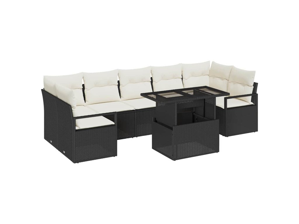 Sada zahradních pohovek s úložištěm 8 pcs Černá Poly ratan