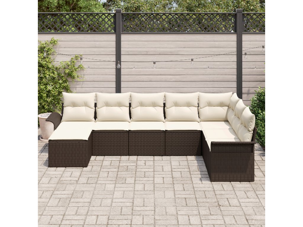 Sada zahradních pohovek s polštářem 8 pcs Hnědá Poly ratan