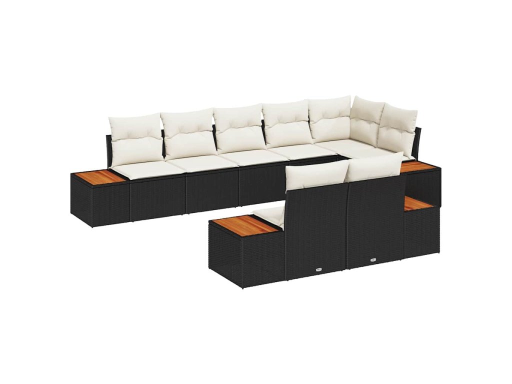 Sada zahradních pohovek 8 pcs Černá a krémová Poly ratan