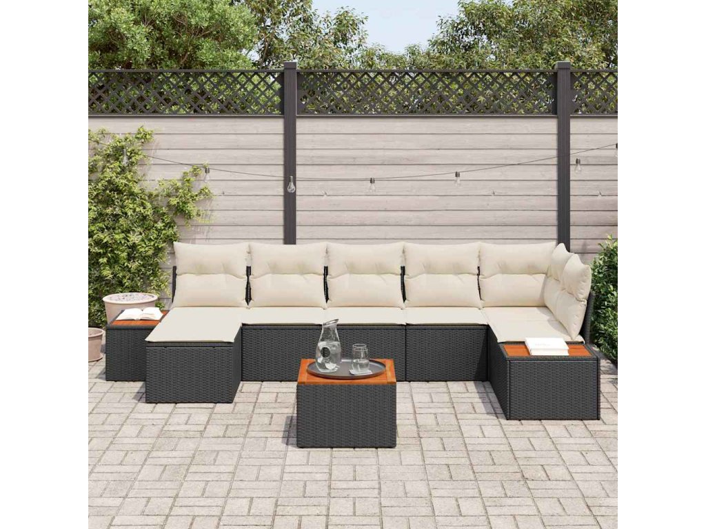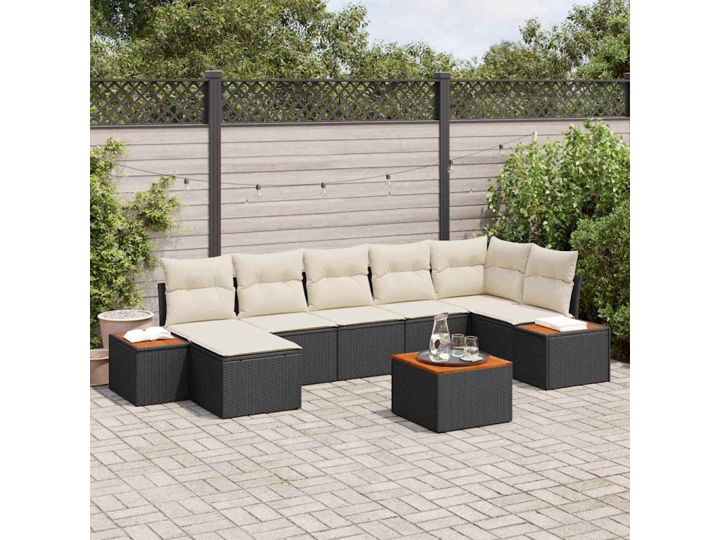 Sada zahradních pohovek 8 pcs Černá a krémová Poly Ratan